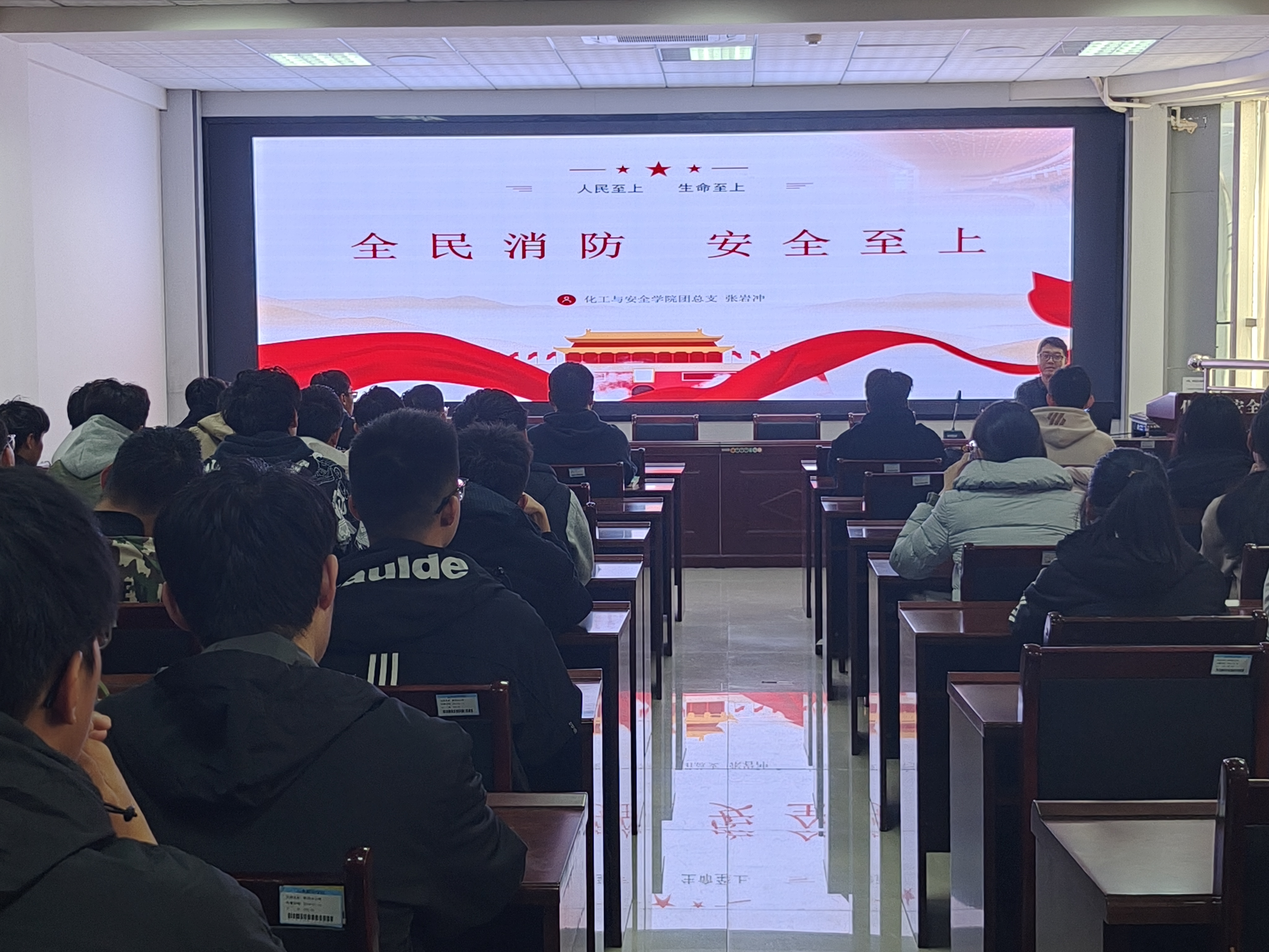 11月8日,beat365在第九教学楼313教室举办消防安全专题讲座。本次讲座由员工科科长张岩冲主讲,24级全体新生参与,共同学习消防安全知识,旨在深入贯彻“人民至上、生命至上”的安全发展理念,进一步提升员工的消防安全意识和自我保护能力。