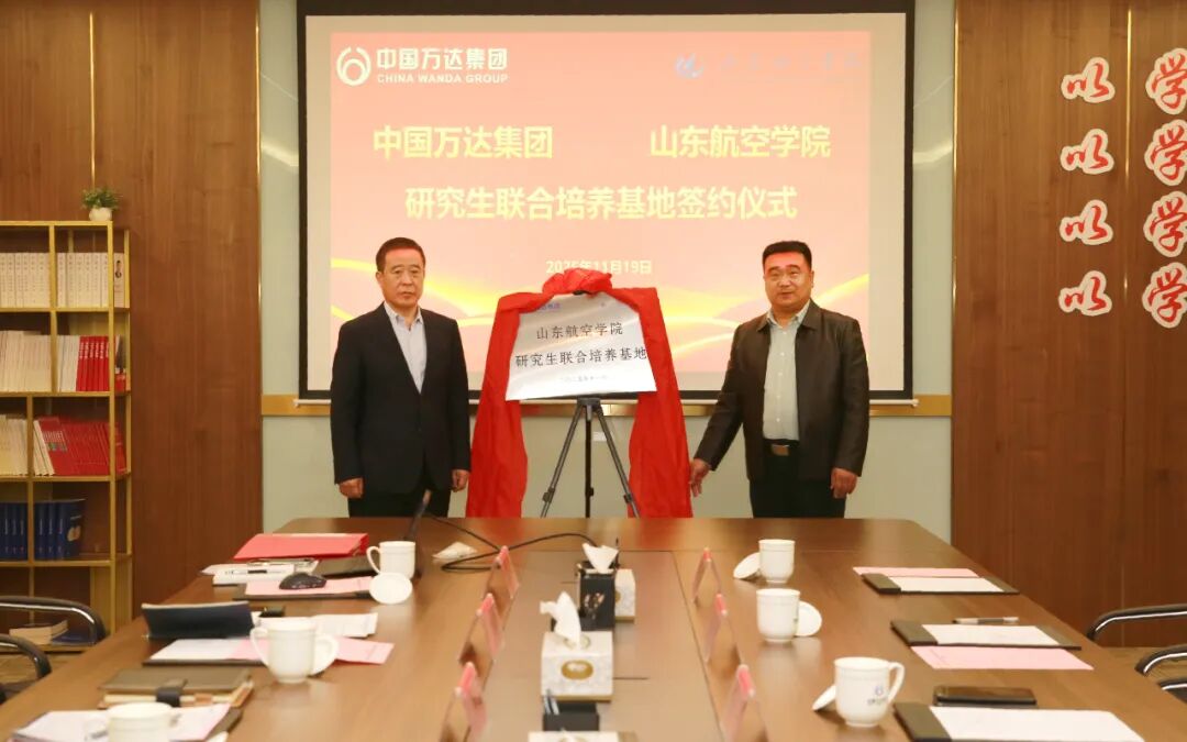 在与会人员的见证下,院长杨仲年与万达集团轮值执行总裁巴树山共同为基地揭牌,与万达集团人力资源部总监许新鹏就研究生联合培养基地进行签约。